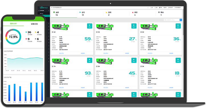 APP为管理人员提供了宏观的汇总数据,可以总览设备的生产进度,OEE,能耗等。同时为一线员工提供便捷的生产操作模块,